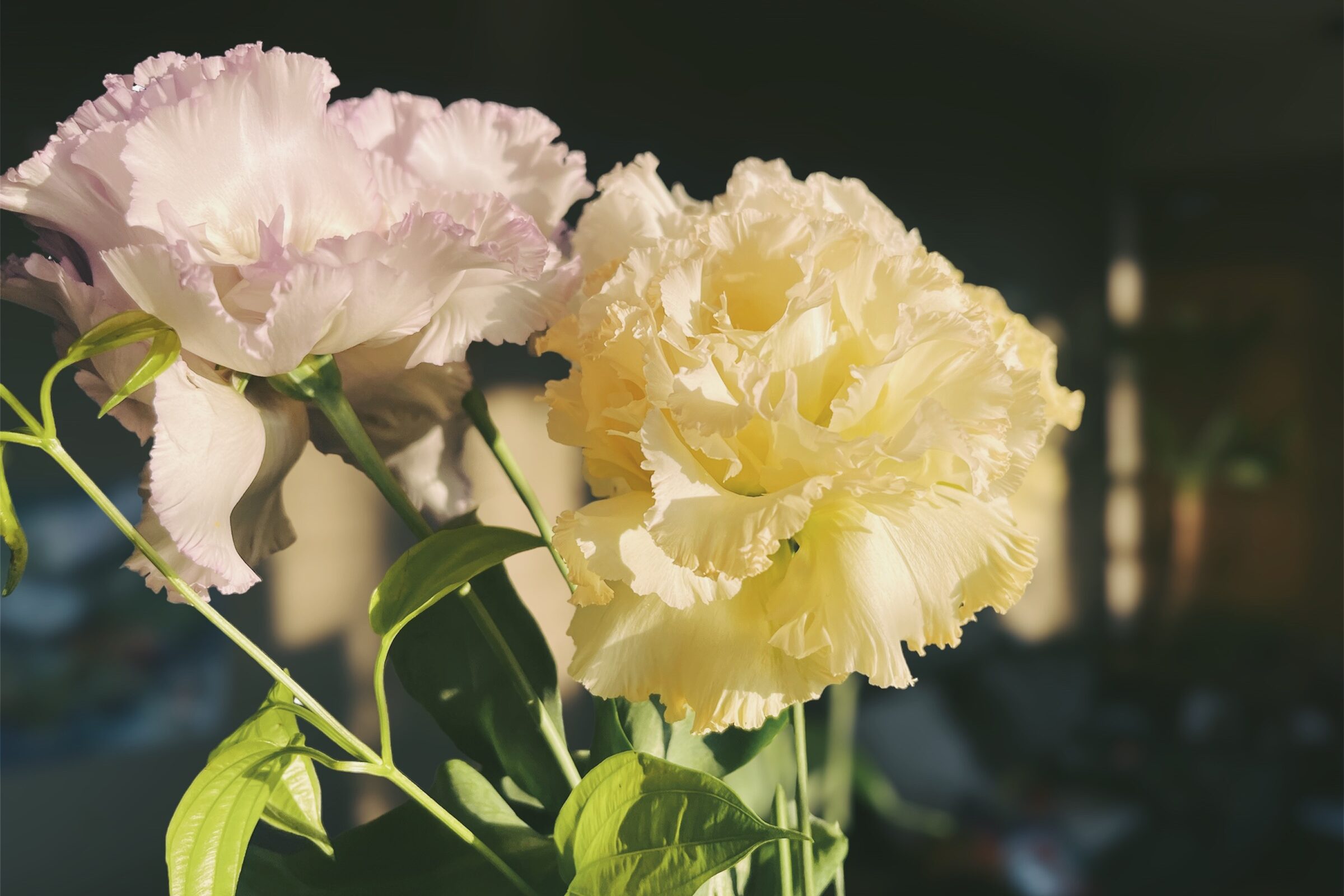 帰宅するとで迎えてくれる花々。
