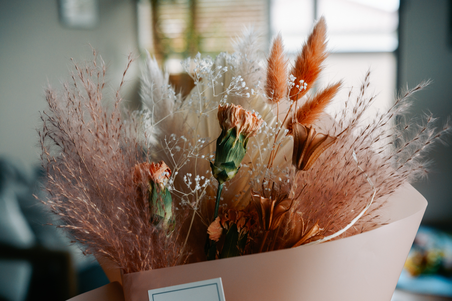 ちなみに僕はカーネーションを選びました。ドライフラワーにすると随分と印象が違いました。