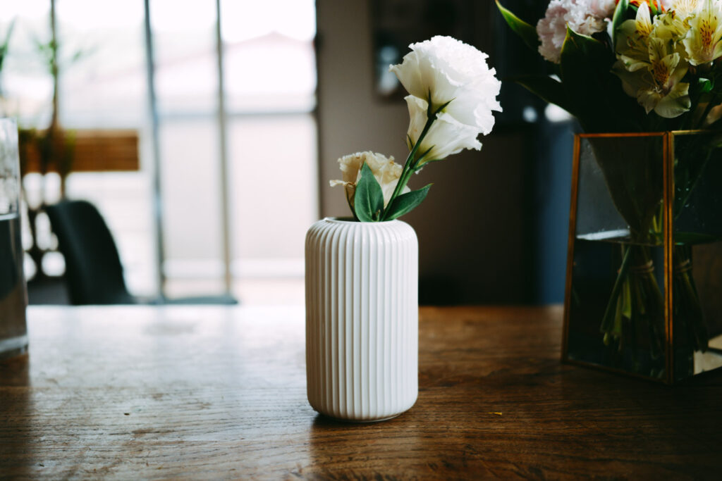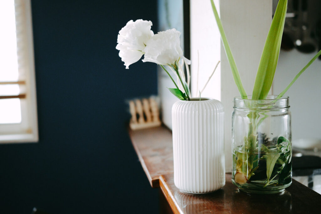 妻が会社から花をいただいてきて、リビングやキッチンに久しぶりに花を置く生活をしてみたところ、すごく部屋の雰囲気がよくなりました。