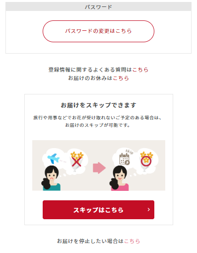 お届を停止したい場合はこちらのこちらをクリック(タップ)
