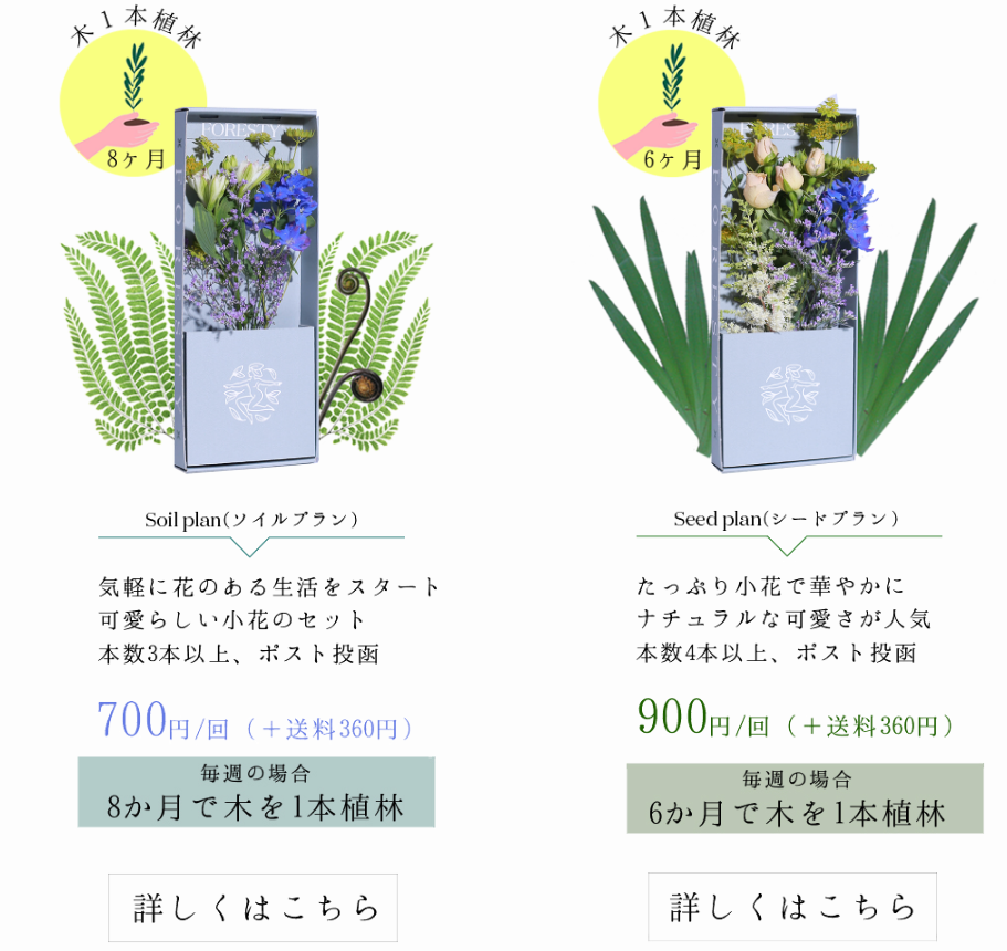 FORESTYはサブスクを数ヶ月続けることで、植林に貢献できるお花の定期便です。